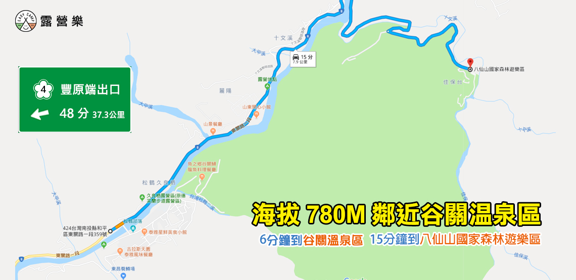 ※ 路程約15分鐘可到松鶴部落,採買便利,生鮮雜貨都有。