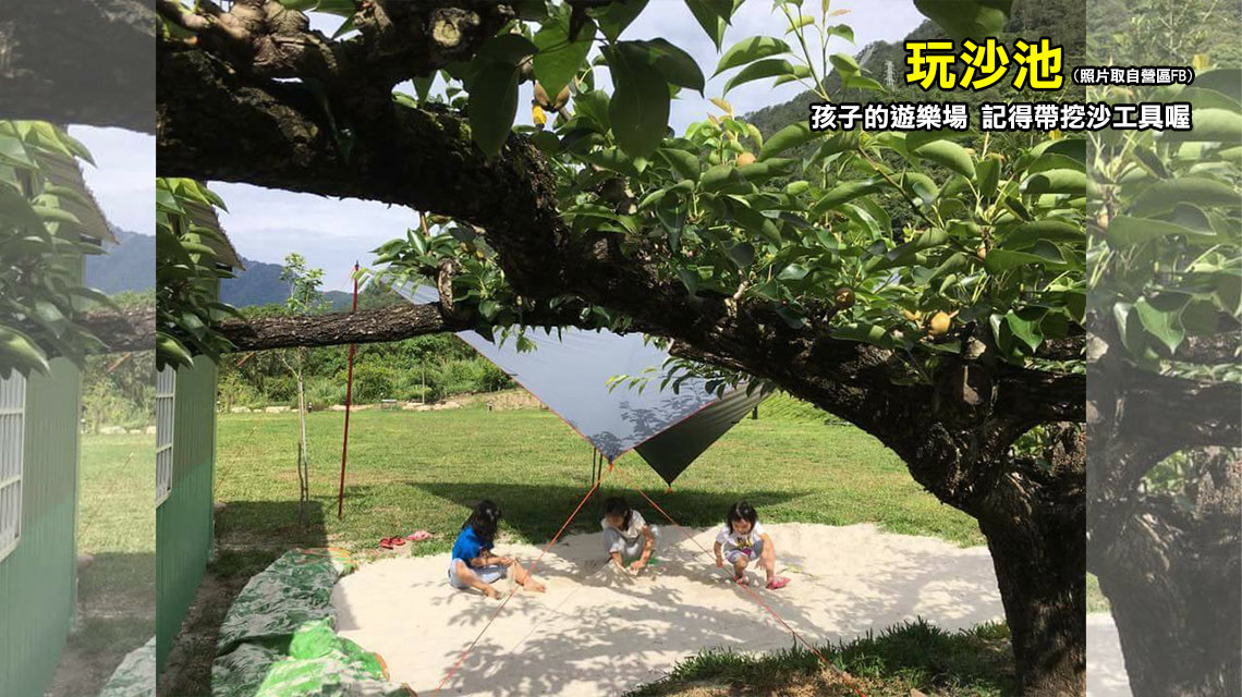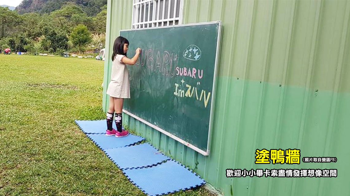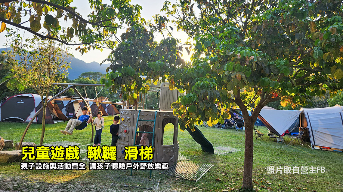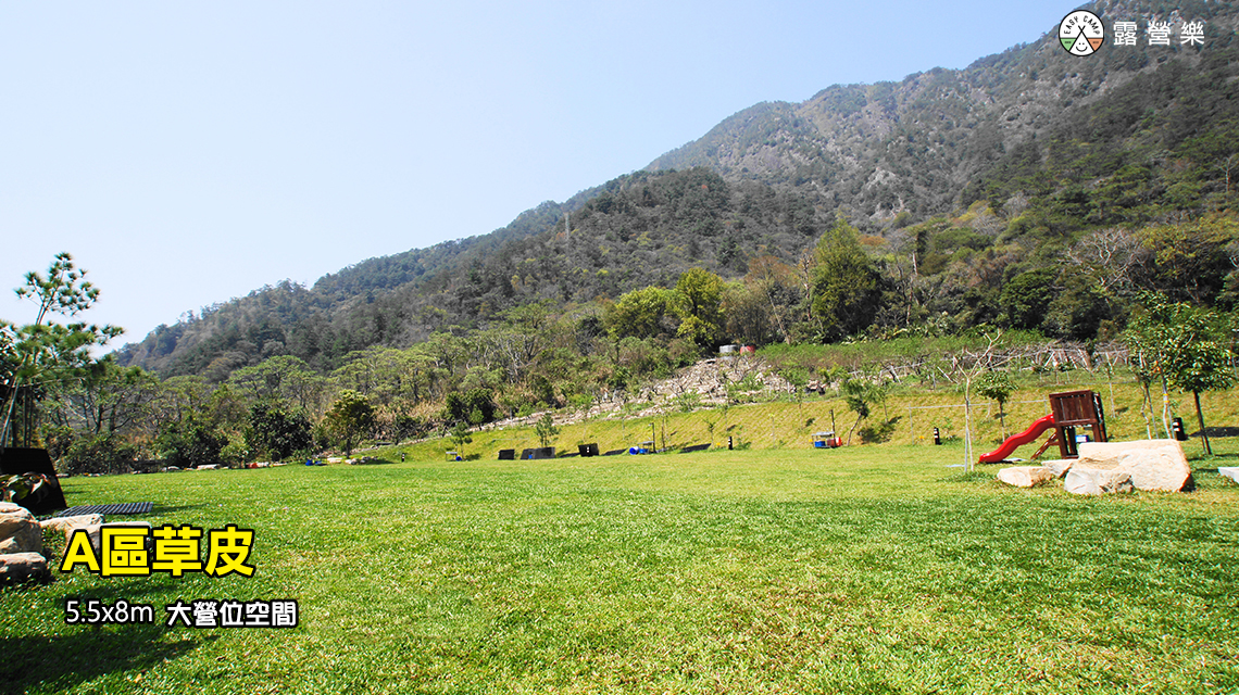 視野遼闊,鬆厚地毯草,沙坑、塗鴨牆,指標性親子營區