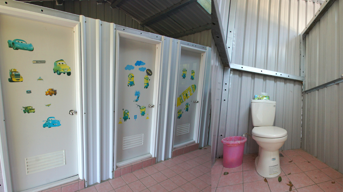 ※ 女生坐式廁所1間、蹲式衛浴5間。