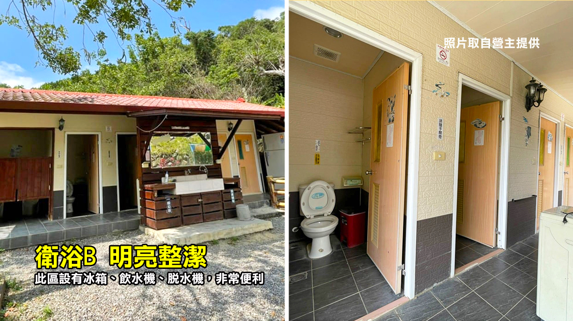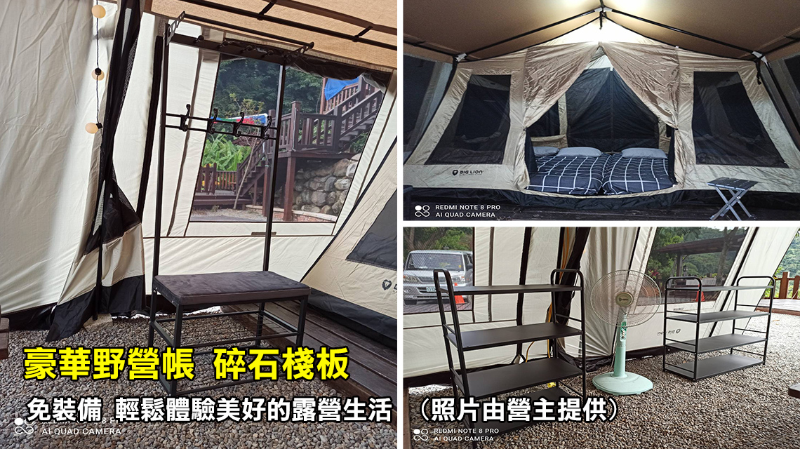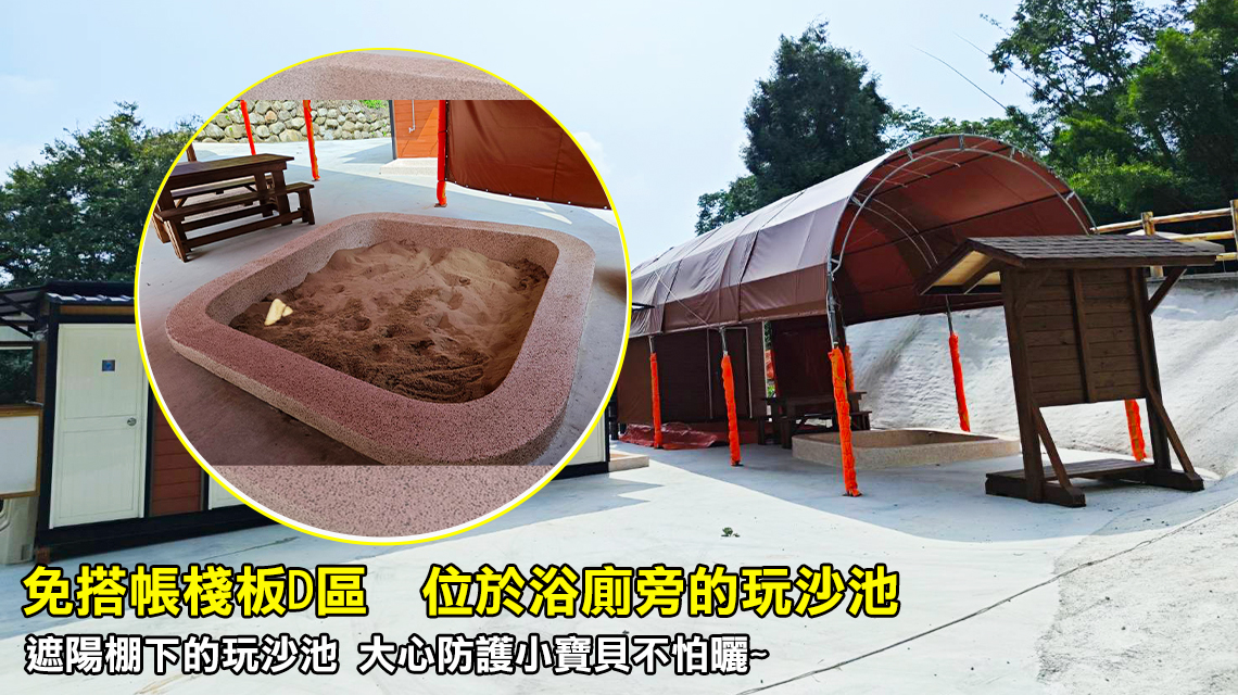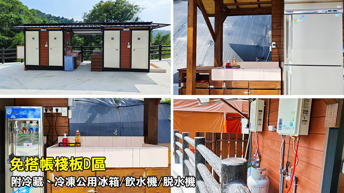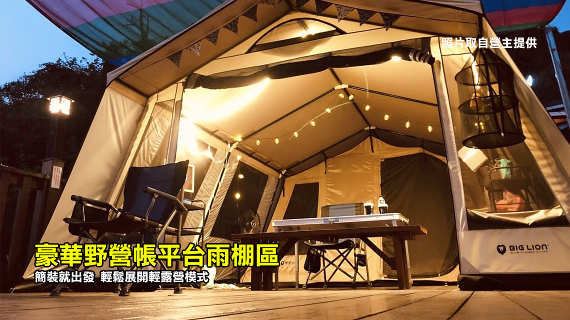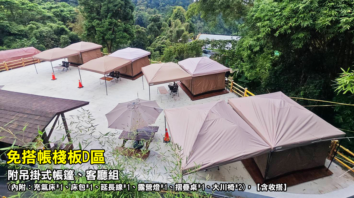 ※ 露營屋區:共用衛浴廁所2間,於大露台露營屋下步行約10步。