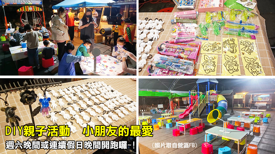 ● DIY活動:一般假日週六晚間或連續假日晚間,舉辦小朋友們最愛的親子活動,如遇大雨將暫停實施,改由發放DIY材料包在自己的營位及露營屋玩,活動內容詳電洽營區或營區粉專【四季非露不可】。