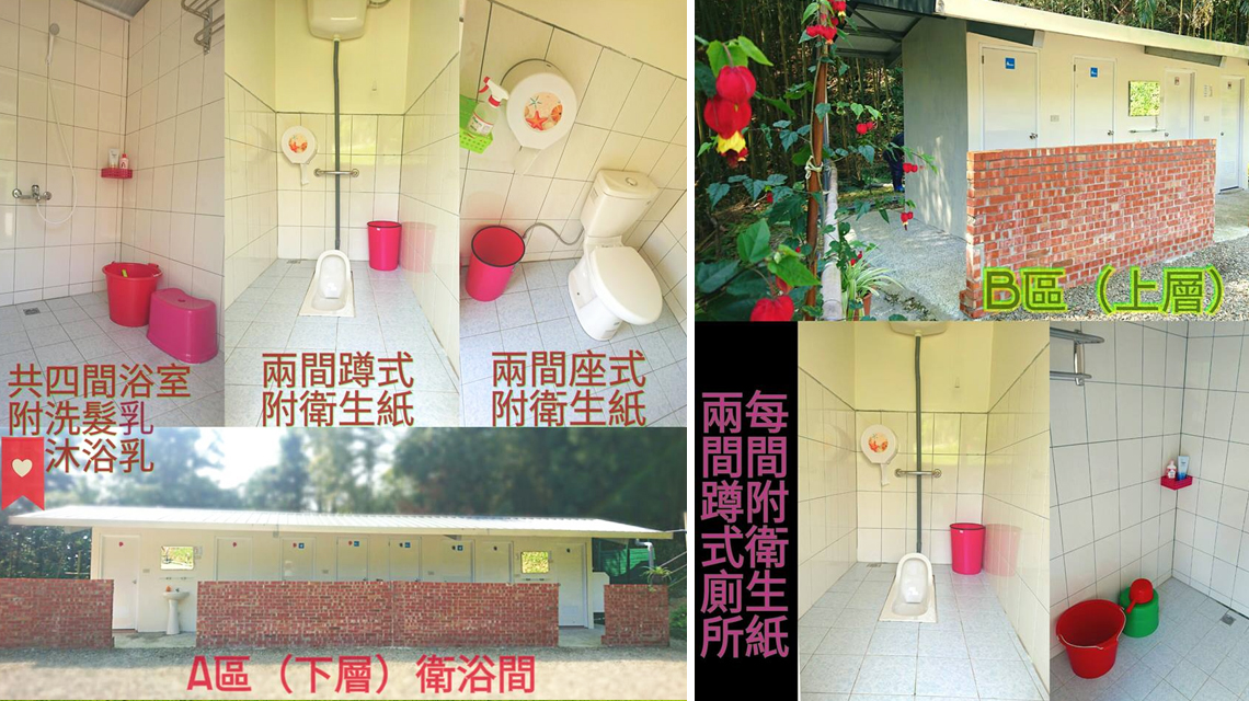 ※ 浴廁A:男女共用淋浴間3間,廁所4間(坐2、蹲2)。