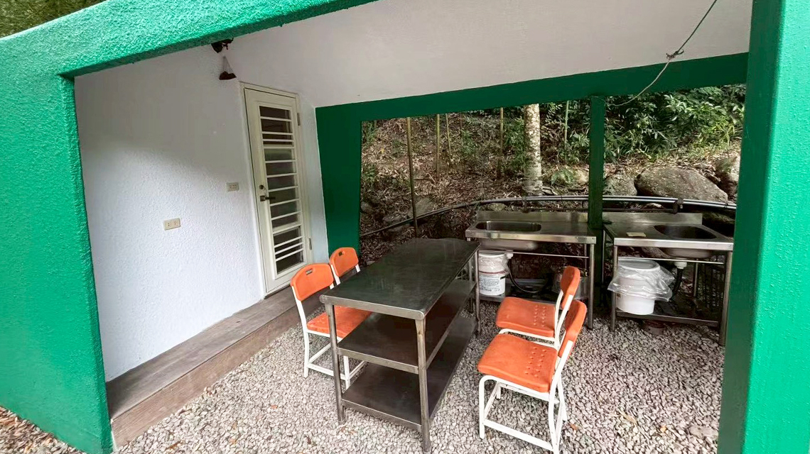 竹林屋-戶外炊煮。附桌椅一組(一桌四椅)、水槽、插座、垃圾桶。