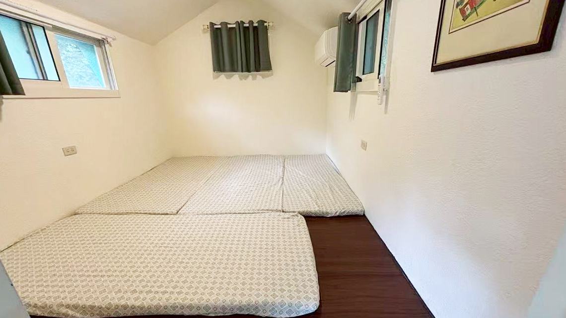竹林屋,附摺疊床墊4組、床包、大金冷暖氣1台、插座。