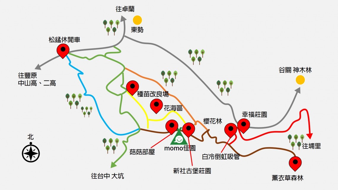 鄰近新社花海與許多知名景點,讓您感受園區的愜意悠閒