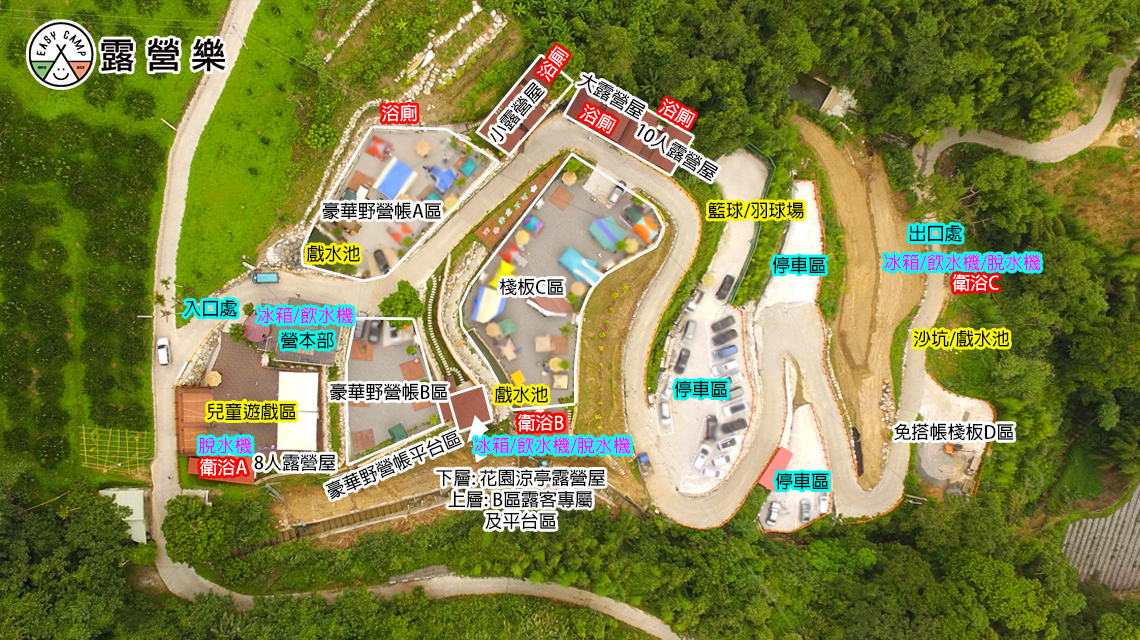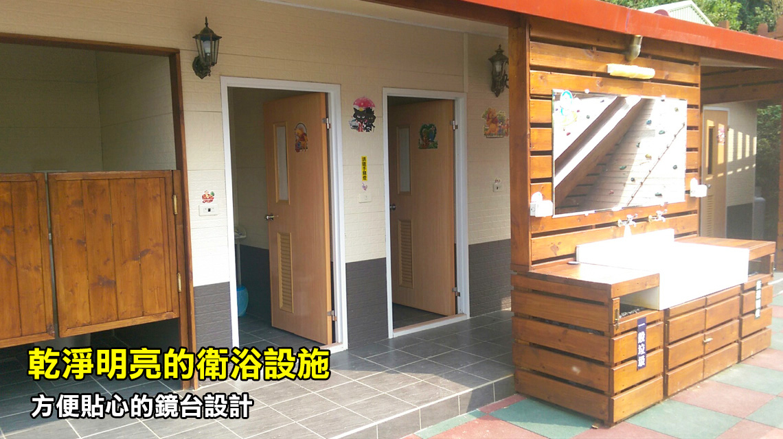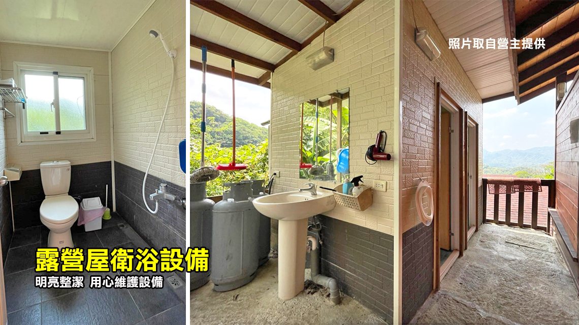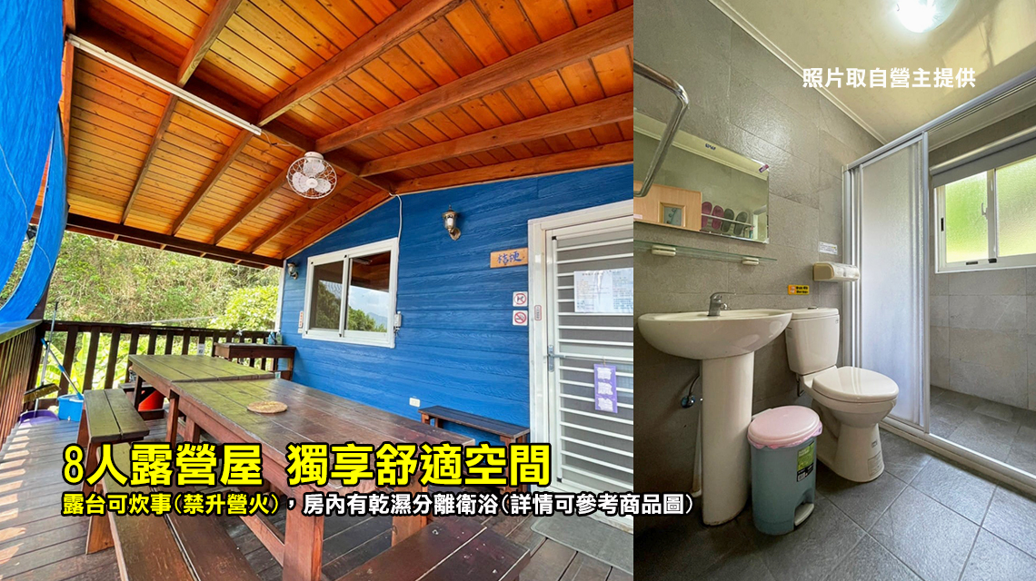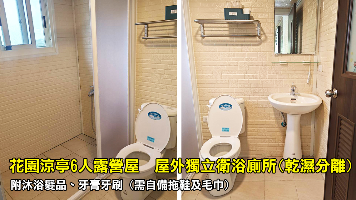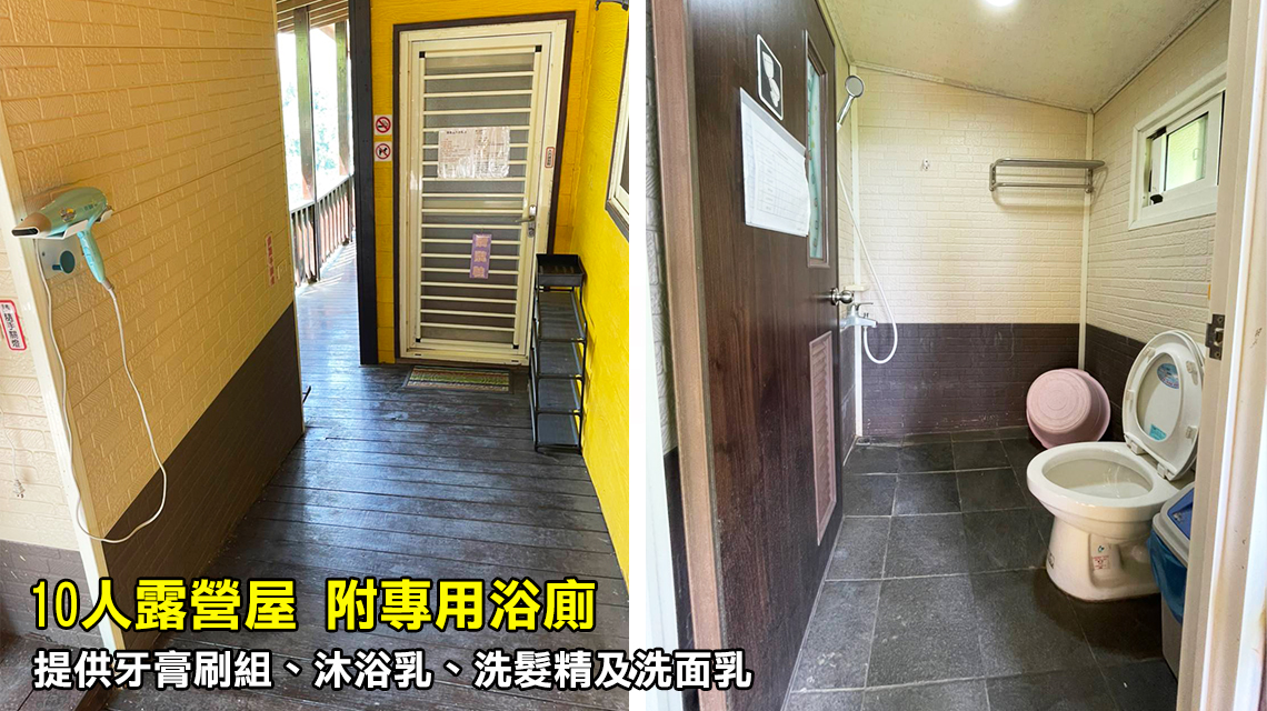 ※ 露營屋區:共用衛浴廁所2間,於大露台露營屋下步行約10步。