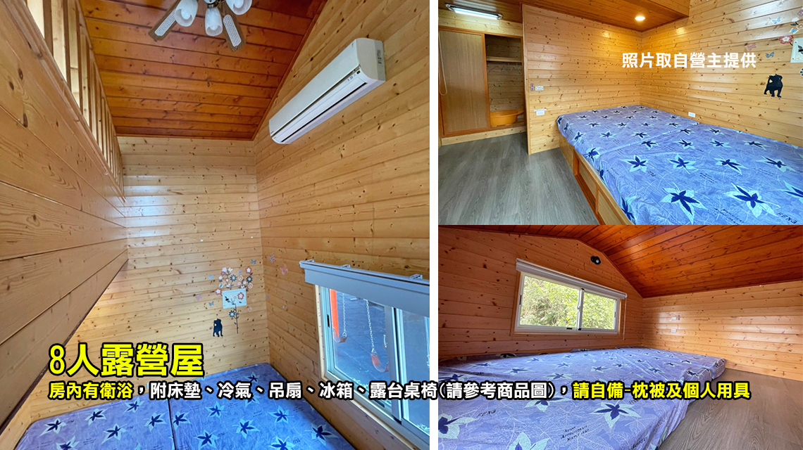 ※ 此為露營客專用,需自備枕頭、棉被、拖鞋及毛巾。