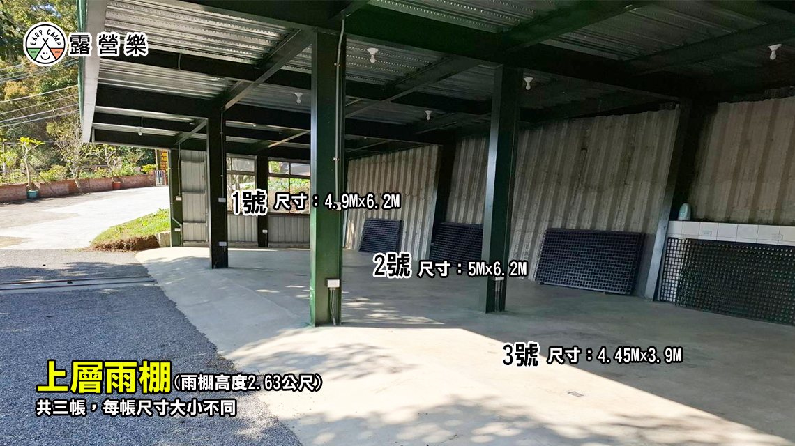 ◎ 上層雨棚3號:4.45Mx3.9M 高2.63公尺