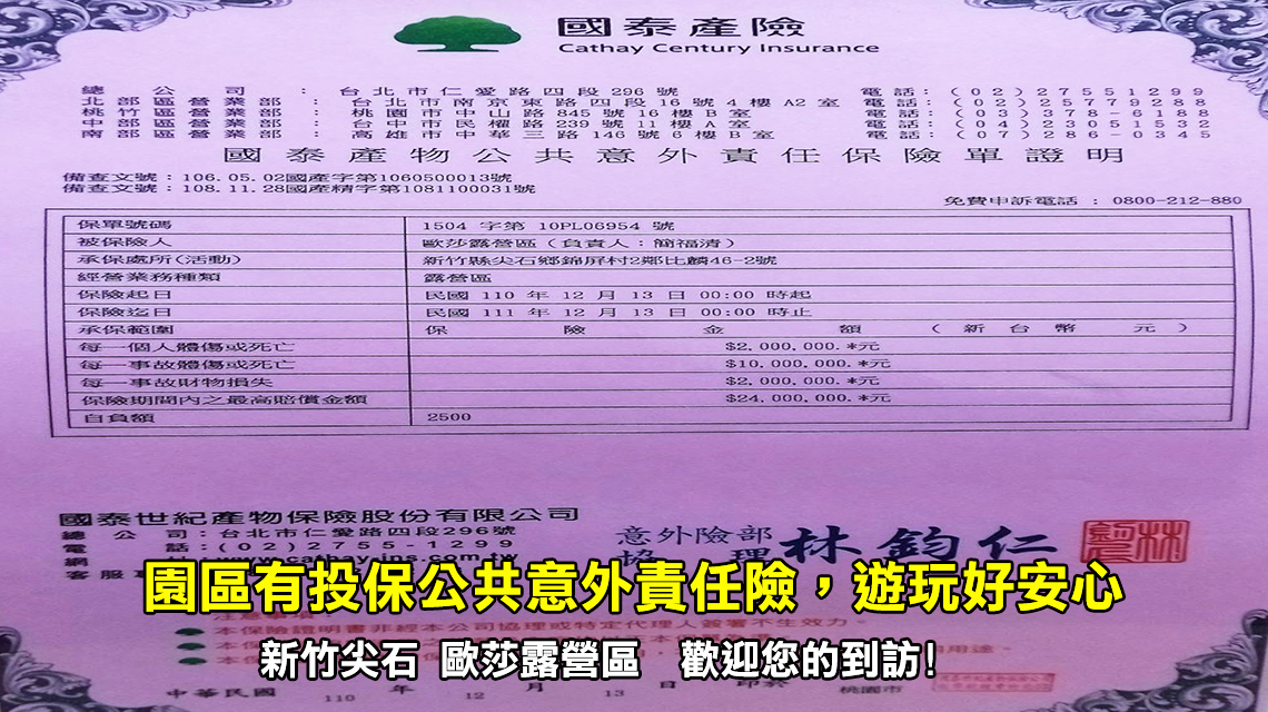 ※ 營業名稱:歐莎露營區/統一編號:82167978