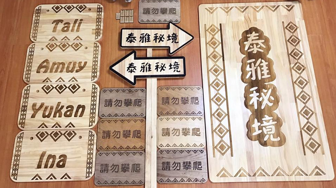 特色指示牌 每一區名稱都是以營主一家的泰雅族名命名