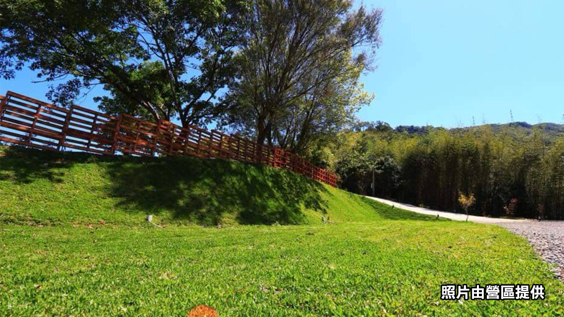優質翠綠的草皮、搭配蔚藍的天空、貼心的景觀台可遠眺大漢溪的美景