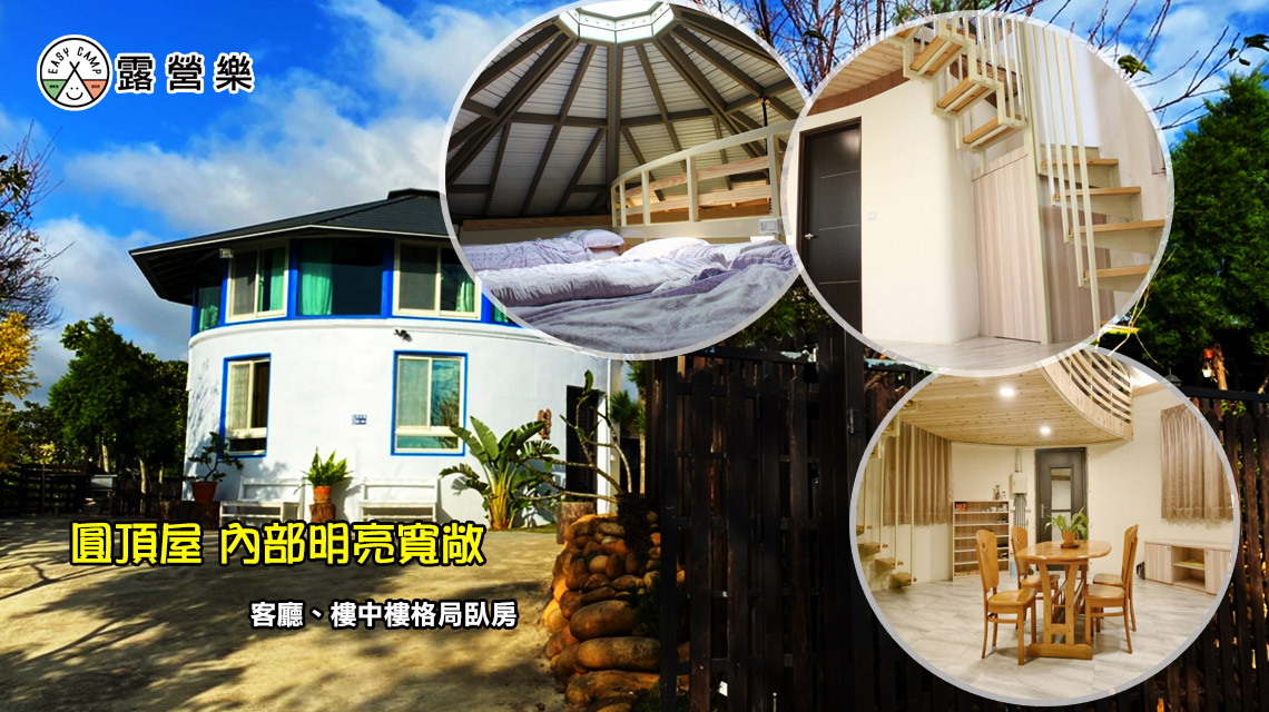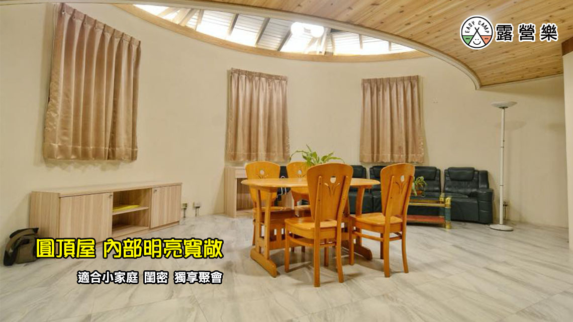 ※ 圓頂屋附三張雙人床、乾濕分離衛浴、梳洗台、冰箱、梳妝台、數位電視、吹風機、電風扇、餐桌椅 、衣架,變頻冷暖空調、茶杯、