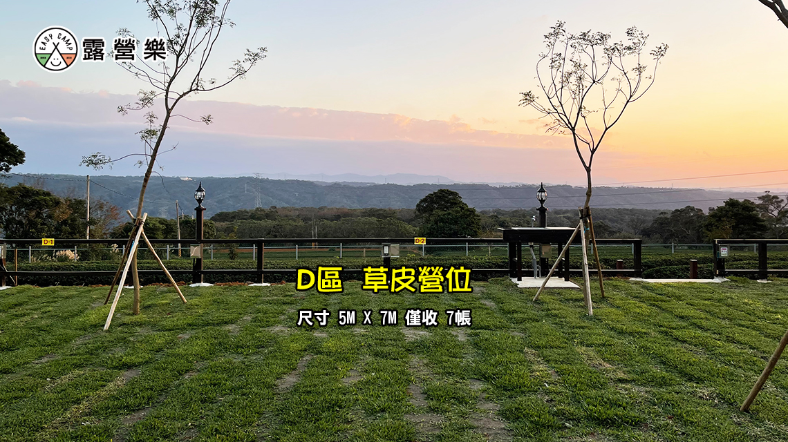 ※ A區(9帳)、B區(4帳)、C區(3帳)、D區(7帳):平/假日 $1200/帳 (營地種類:草皮)