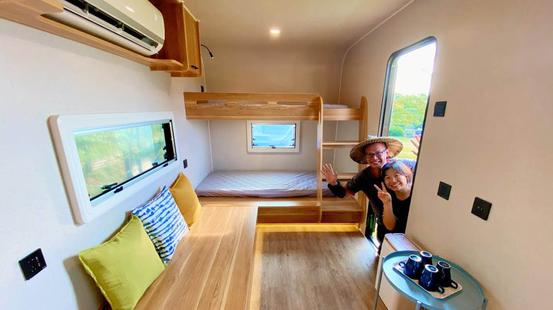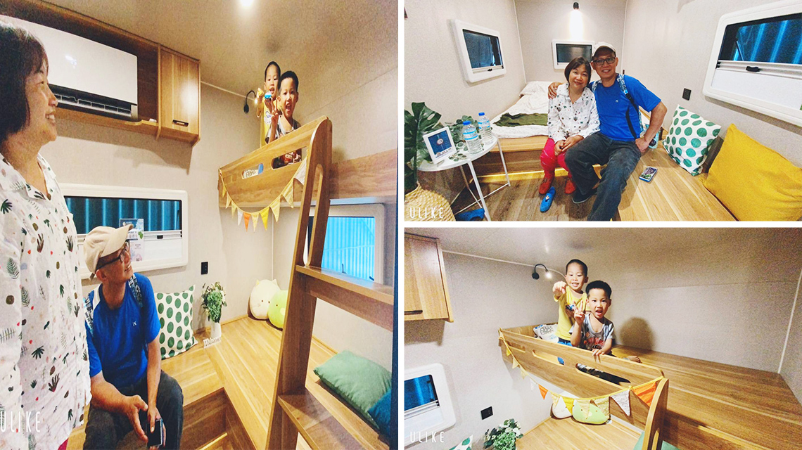 ※ 車內附有:雙人床200cm*200cm+單人床上下舖100cm*200cm(附有睡墊,枕頭棉被需自備),裝有冷暖空調。