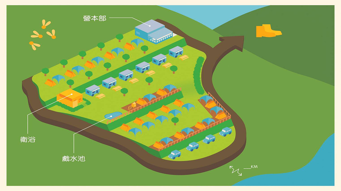 ※ 露營車區:共用水槽6座、插座6座(各有附延長線5M),可下裝備後,集中停車。