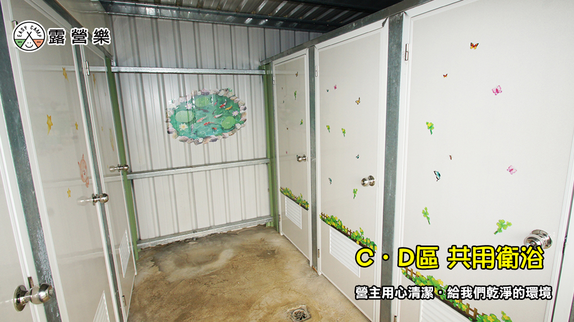 C D區:共用坐式*1、蹲式*2、小便斗*1、淋浴間*3。