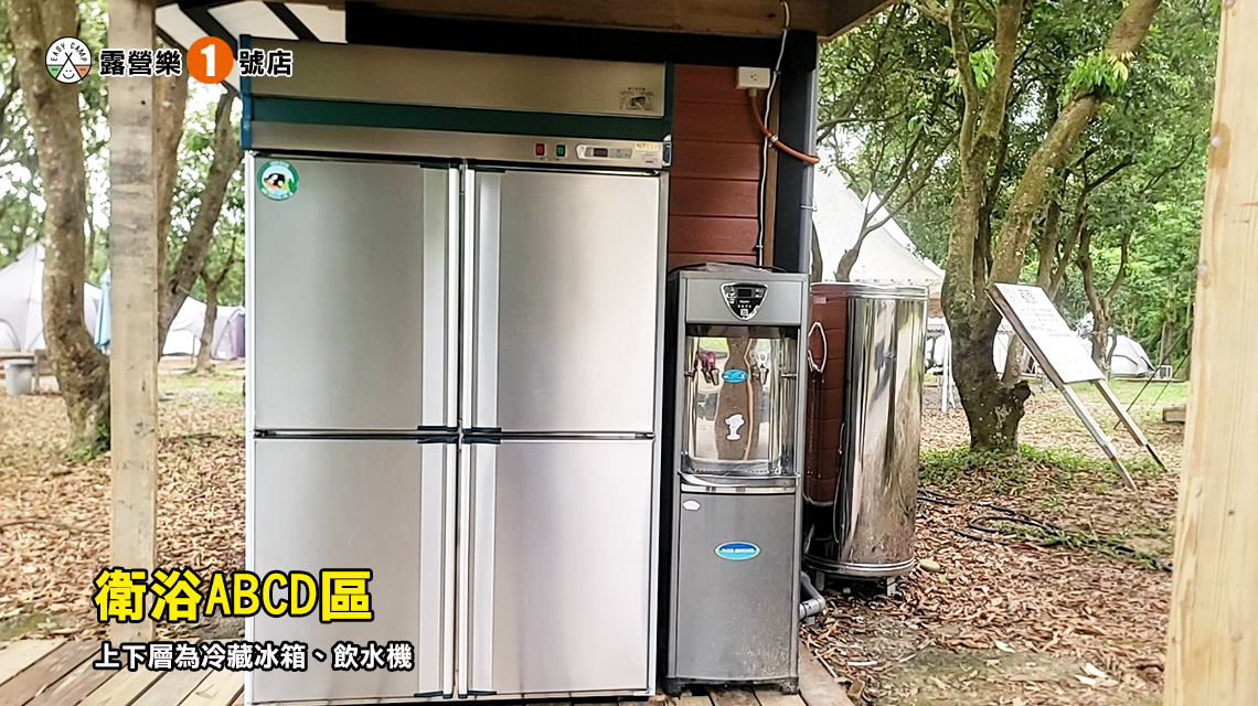●冷藏冰箱、飲水機設置於ABCD衛浴旁,冷凍冰箱位於營本部。