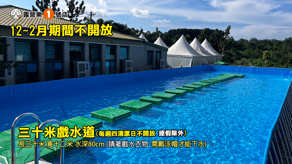 ●30米闖關戲水池12~2月期間不開放;大象戲水池全年開放(每週四清潔及天氣不佳也不開放)。