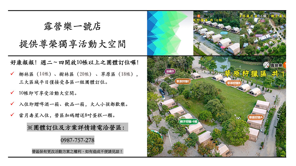 ※ 詢問營區資訊請洽客服02-22527966(時間週一至五9:00~18:00)