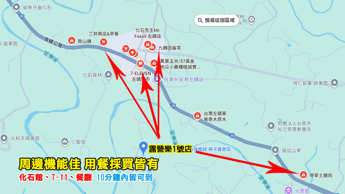 台南市左鎮區光和65-5號(不要導航地址會找不到,map搜尋露營樂1號店即可)