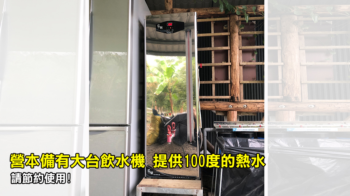 ※ 狩獵帳休息區備有大台冰箱,冷凍、冷藏皆有,還有大台冷熱飲水機,請節約使用。