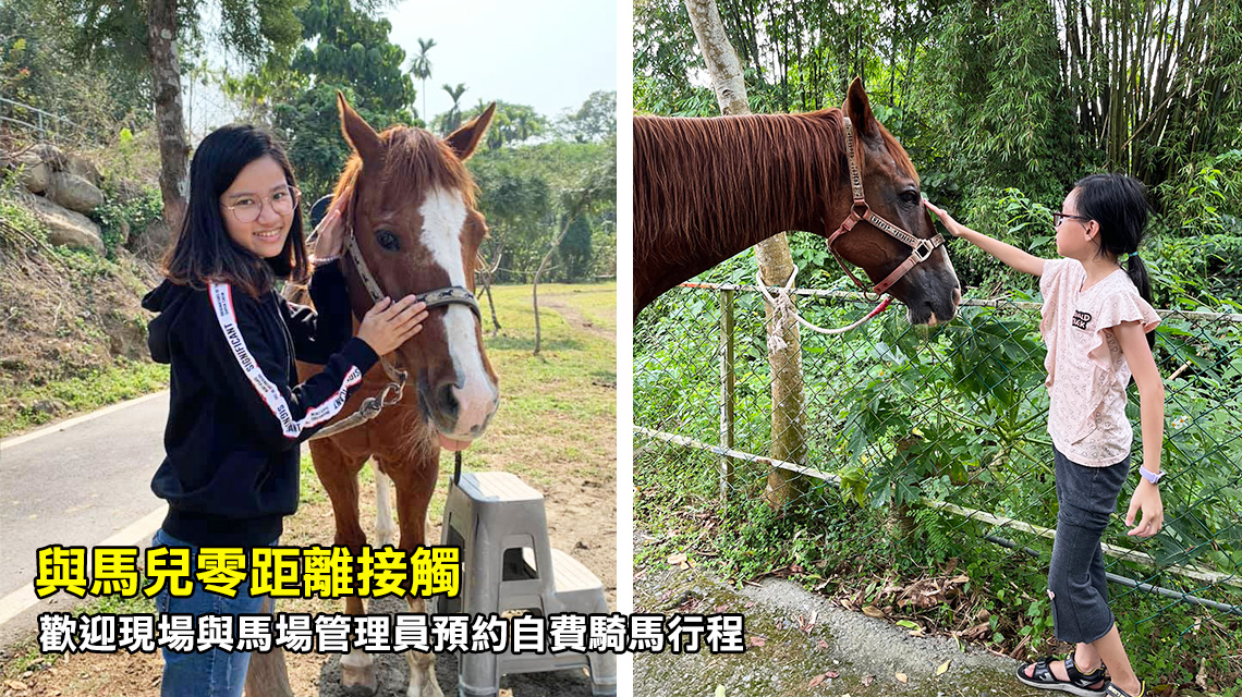 ※ 與可愛馬兒零距離接觸,歡迎現場與馬場管理員預約自費騎馬行程 (以馬場管理員時間調度為準,週日固定公休)。