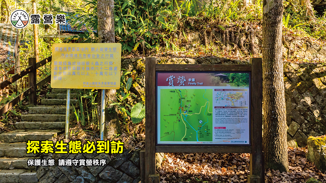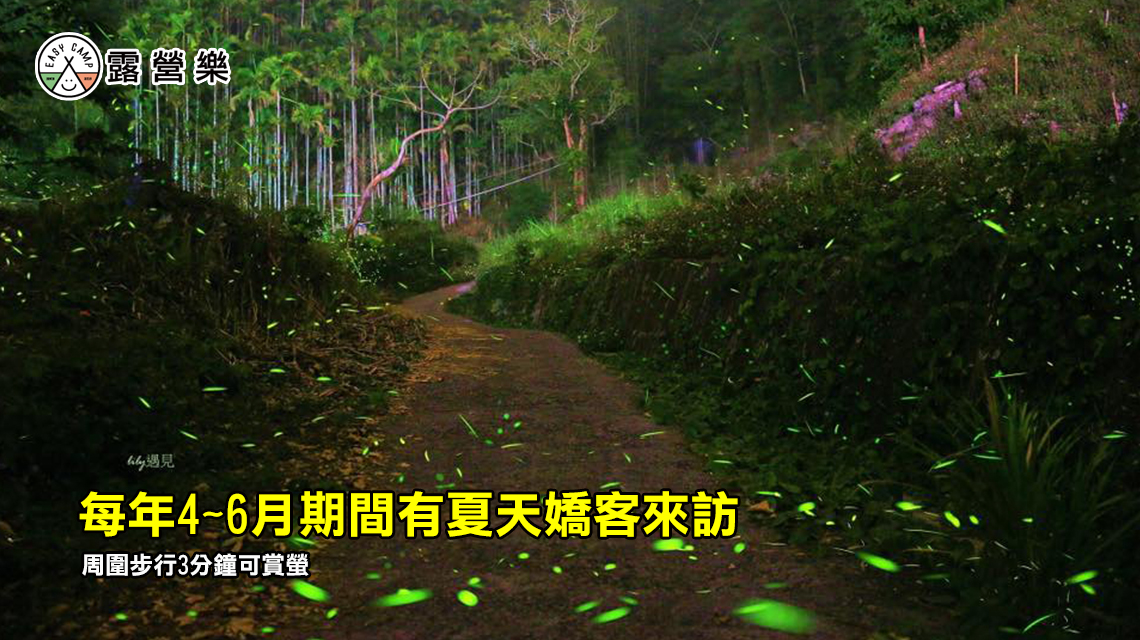 海拔1000m,空氣清新有步道,生態豐富可賞螢火蟲、飛鼠、螢光菇、溪蝦及星星