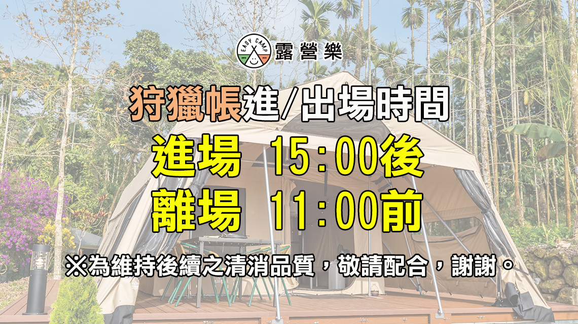 進場 15:00後,離場 隔日11:00前(請務必配合進出場時間)