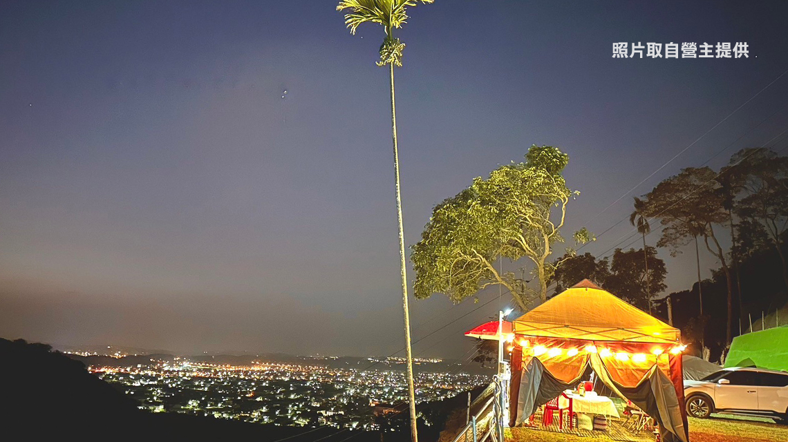 擁抱公館鄉山城美景~坐在帳篷前即可享受全天候山景、晚霞及夜景放送