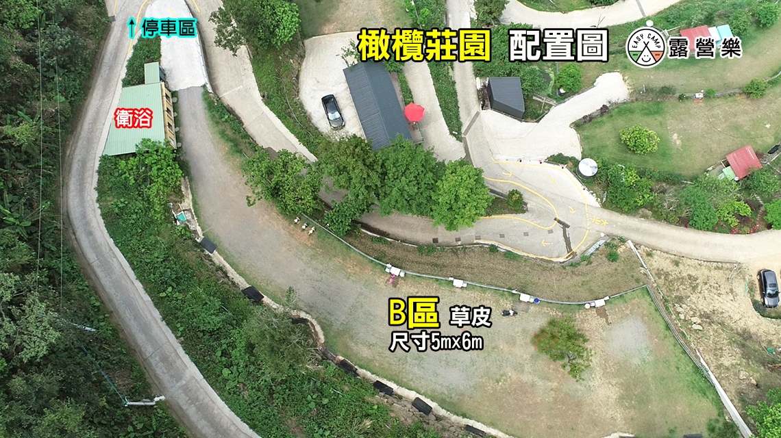 B區 共用水槽5座、電箱4座(每座插孔5個),請自備延長線15米以上,車停營位旁(可車露) 或 下裝備後集中停車。