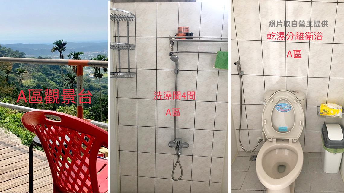 A區:小便斗:2座、座式:2間、蹲式:2間、淋浴間:4間