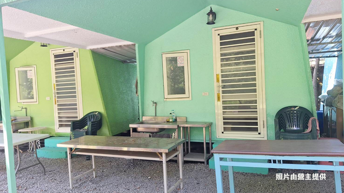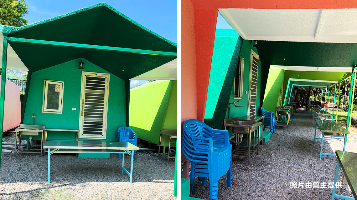 馬卡龍輕露營區 備有桌椅及洗手槽 輕鬆料理好方便