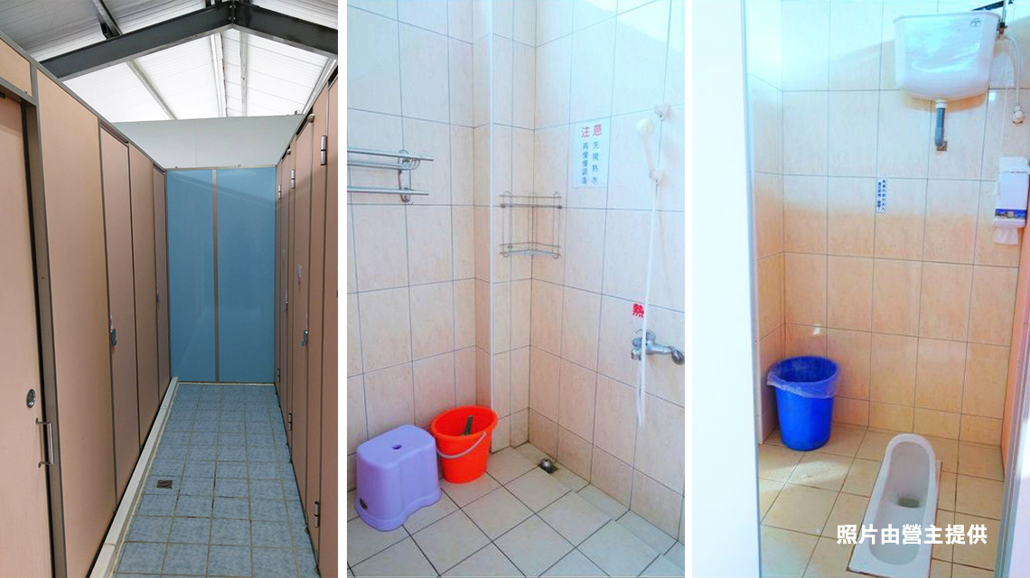 ※ 浴廁A-(A雨棚區與VIP區共用):男女共用淋浴間3間,共用廁所2間(坐1蹲1)、小便斗1座。