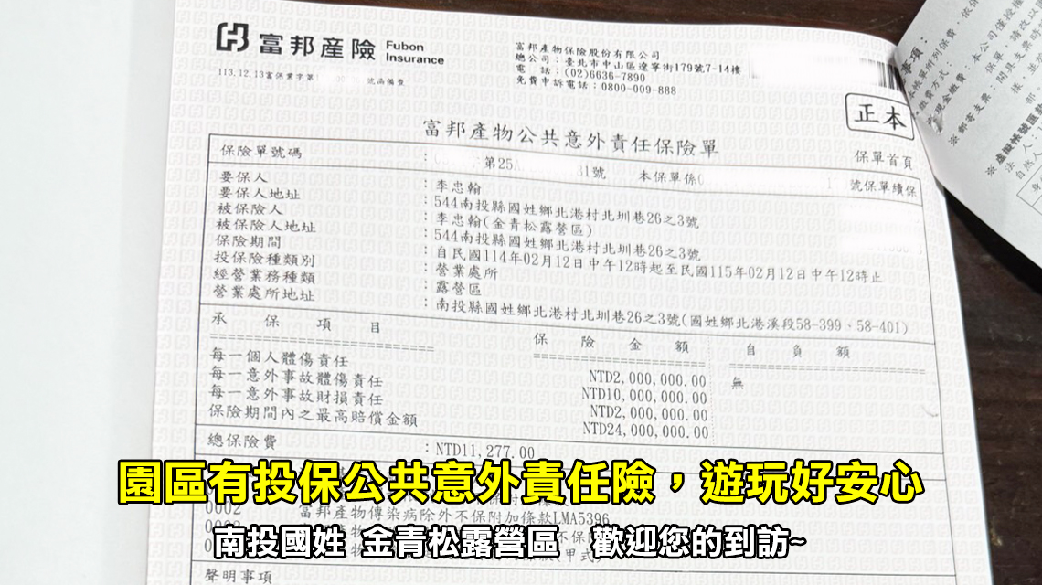 ※ 每營位限搭1睡帳、1客廳帳,附1停車位 (加車每台200元,以營主安排停車)。