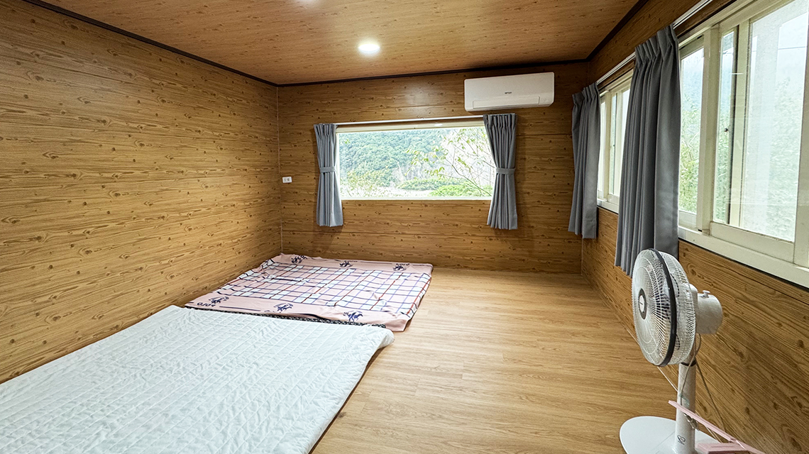 ◎ 室內設備附:雙人床墊、冷暖氣、風扇、室內插座,(枕頭/棉被/寢具需自備)。