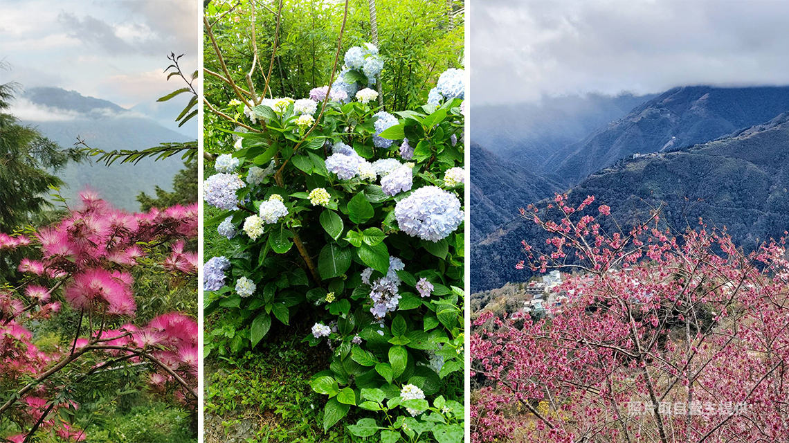 四季花卉繽紛園區: 櫻花、繡球花、粉撲花