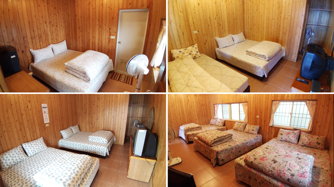 提供雙人三人四人六人房 簡單乾淨原木多樣住宿