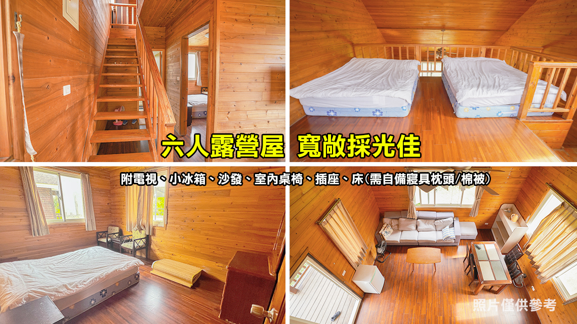 ※ 室內設備:附雙人床墊*3(寢具自備枕頭/棉被)、液晶電視、吹風機、小冰箱、沙發、插座、餐桌椅(可室內用餐),須注意清潔。