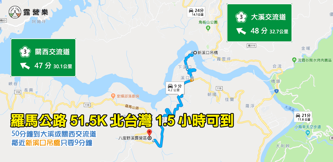 3、國道3號>下關西交流道往復興方向>羅馬公路(118線)53.5km 即可到達。