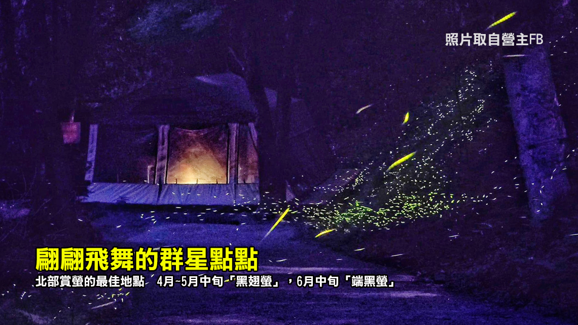 ※ 螢火蟲季:4月-5月中旬「黑翅螢」、6月中旬「端黑螢」、10月底「山窗螢」,最佳觀賞營區,營區內即可賞螢喔~